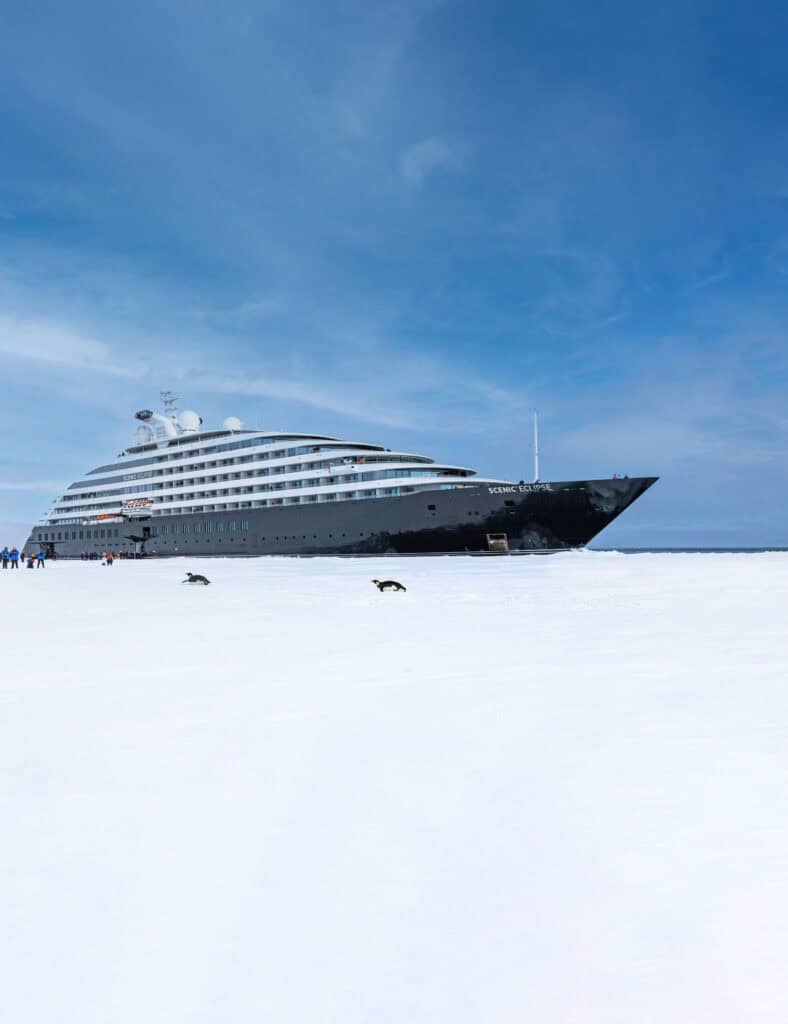 A embarcação – o Scenic Eclipse – é por si só uma atração da viagem, com suítes ultra luxuosas, serviço de mordomo, spa, bares e lounges. A culinária também é um dos fortes do cruzeiro pela Antártica,