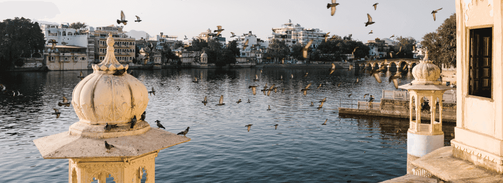 Em Udaipur, a "Cidade dos Lagos", o ritmo da viagem desacelera ainda mais. O passeio de barco pelo Lago Pichola e a vista do Palácio da Cidade criam uma atmosfera de serenidade. O reflexo das montanhas nas águas calmas parece suspender o tempo. E, no final do dia, voltamos para o conforto do trem, onde cada detalhe foi pensado para nos proporcionar momentos de paz e contemplação.