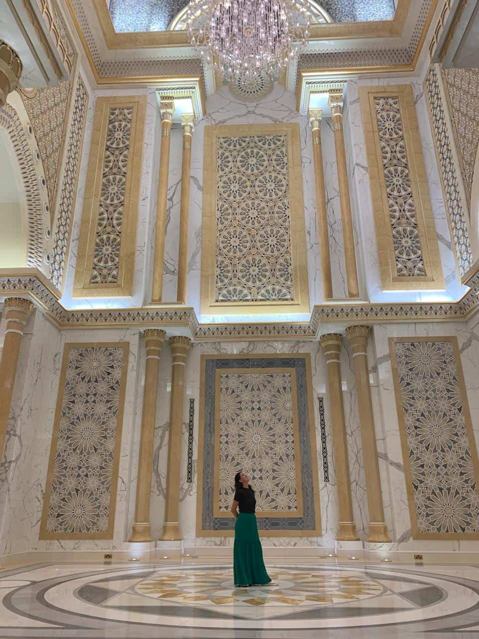 Abu Dhabi fica a mais ou menos uma hora de Dubai, e tem como reservar um passeio de ônibus turístico que vai de manhã e volta de noite, o que vale a pena. A mesquita e o palácio de Abu Dhabi são incríveis, lembrando que as mulheres só podem entrar com vestido longo e véu cobrindo a cabeça e os ombros.